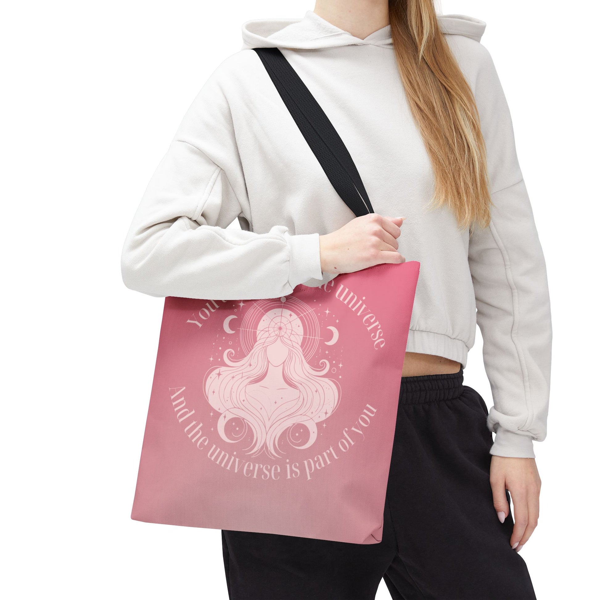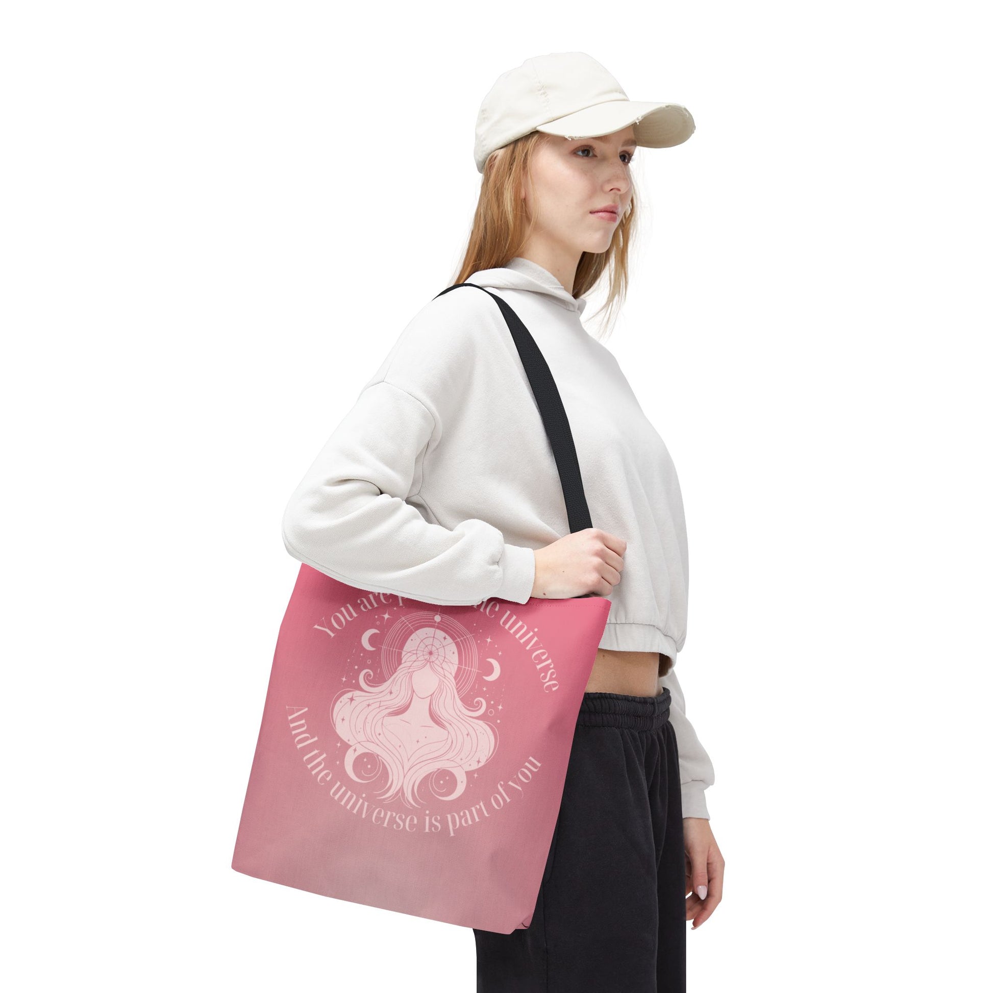 Affirmation Tote Bag — “You are part of the universe” Pink Spiritual Shopper