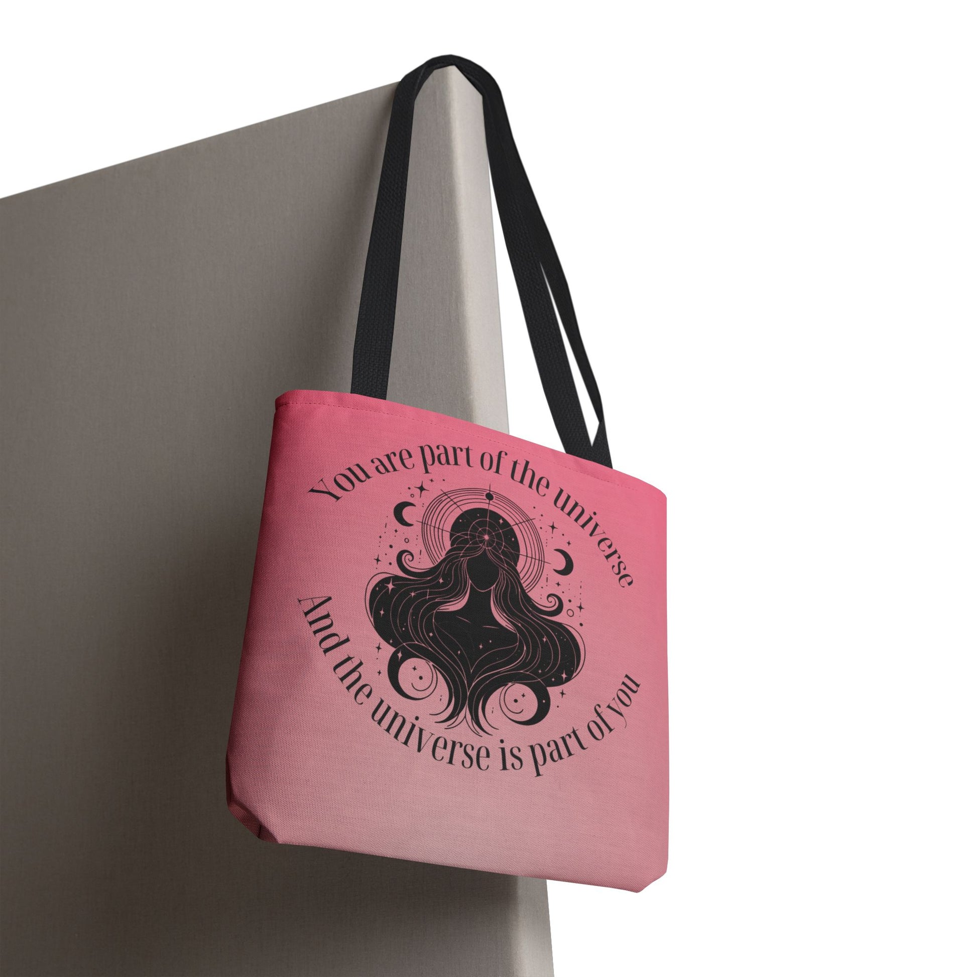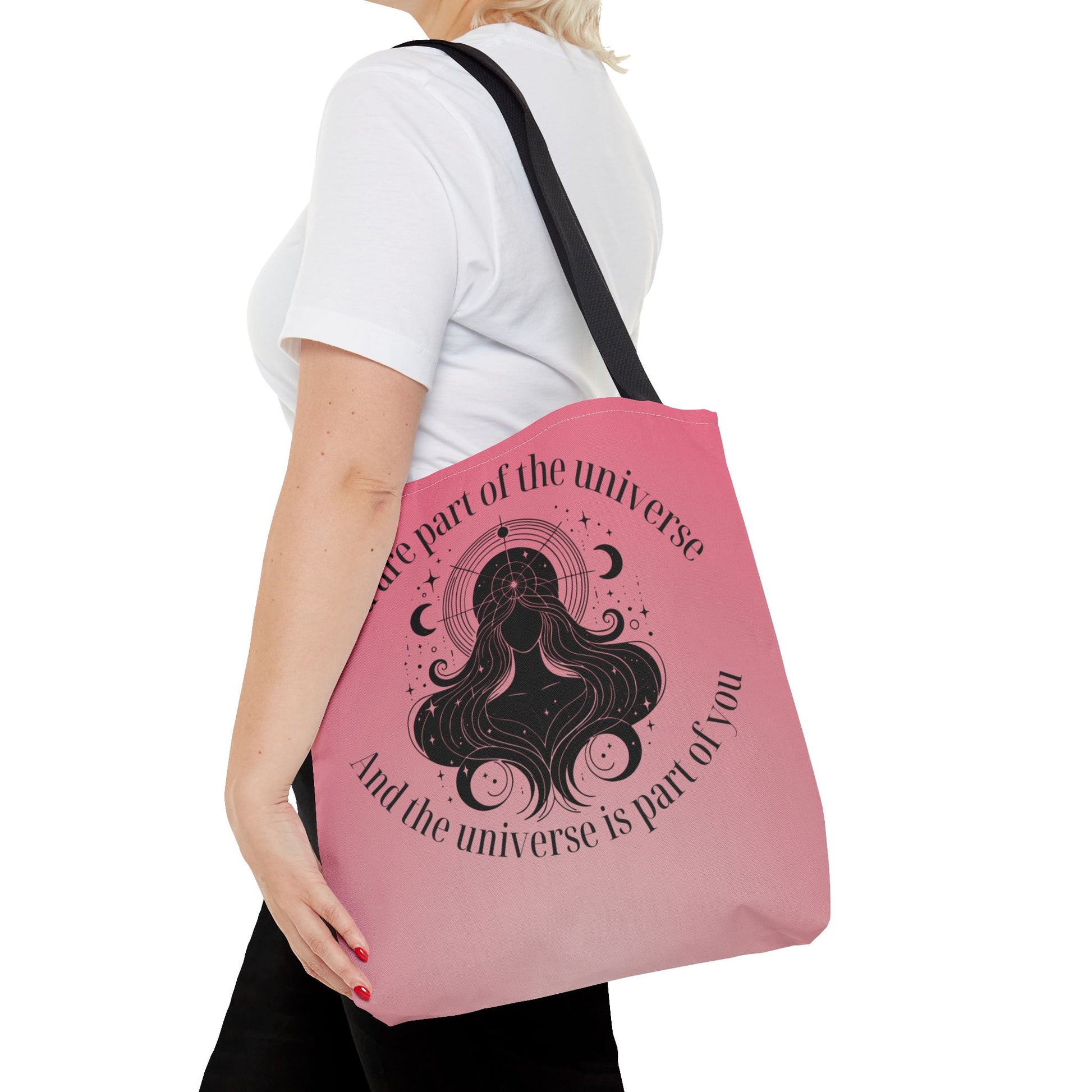 Cosmic Self-Love Tote Bag — "You are part of the universe" Pink Astral Tote